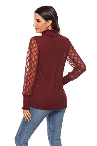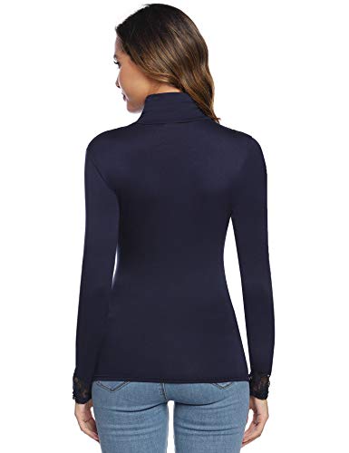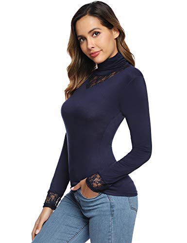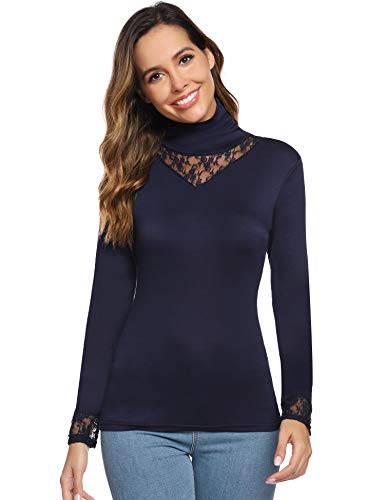 Hawiton Camisetas de Manga Larga para Mujer Elegant Blusas de Cuello Alto con Encaje Ajustado Tops para Primavera,OtoƱo,Invierno
