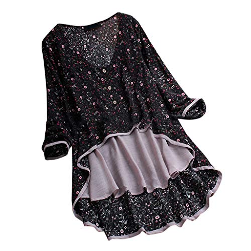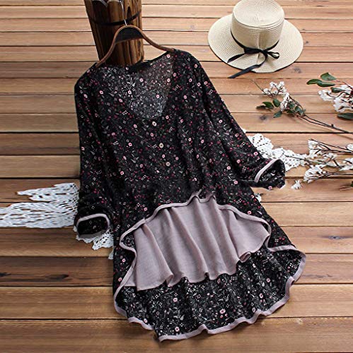FAMILIZO Camisetas Mujer Verano Tallas Grandes XL~5XL Blusa Mujer Elegante Camisetas Mujer Manga Corta Gasa Camisetas Mujer Fiesta Floral Camisas Mujer Elegantes Largo (5XL, Negro)