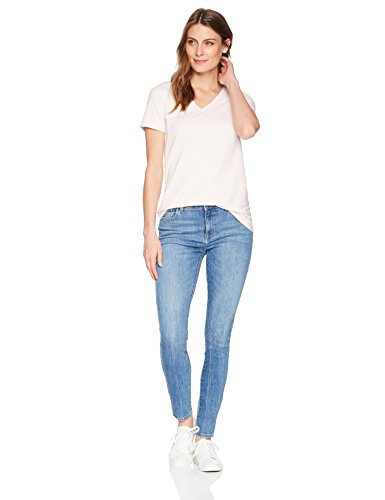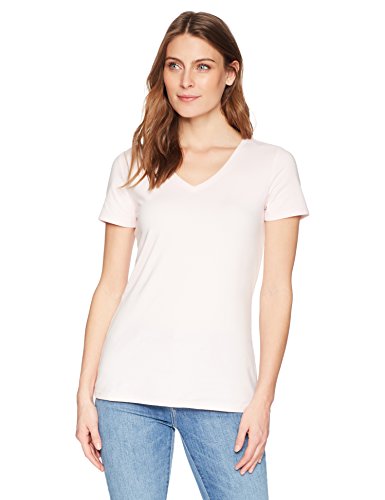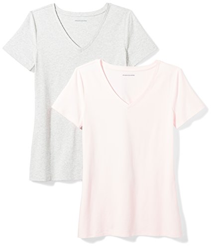 Amazon Essentials Camiseta de manga corta clásico con cuello en V, Mujer, Rosa (Rosa Claro/Gris Claro Jaspeado.), L, pack de 2