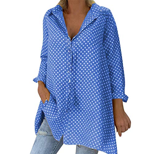 Blusa 2019 Casual Mujer Suelta Vintage Manga Larga Polka Dots Camisas Moda Mujer Suumer Tops Blusas con Cuello Superior Tallas Grandes