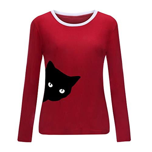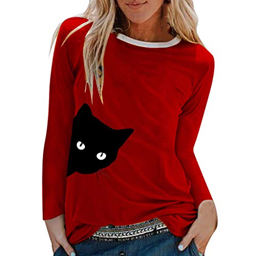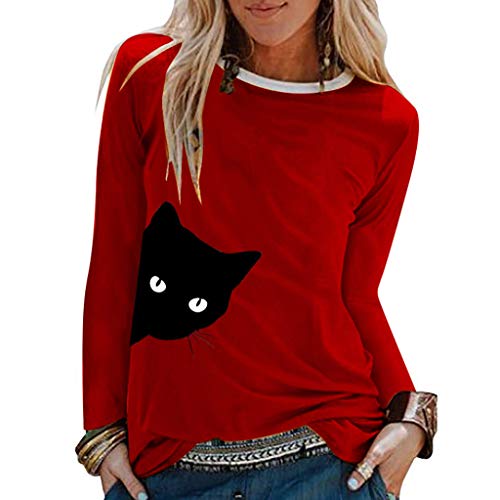 TUDUZ Camisas Mujer Manga Larga Blusas Impresión Tops Cuello Redondo Camisetas (Rojo.h, M)