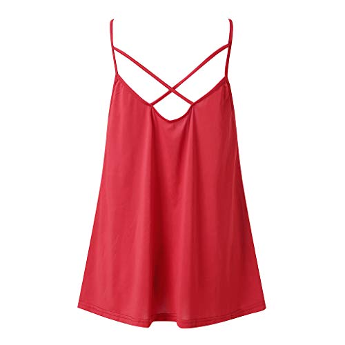 Camiseta Sin Mangas Mujer SHOBDW 2019 Nuevo Sexy Cuello Halter Cruzar Color Sólido Tops Blusa Playa de Verano Suelto Camiseta Mujer Tallas Grandes(Rojo 2,L)