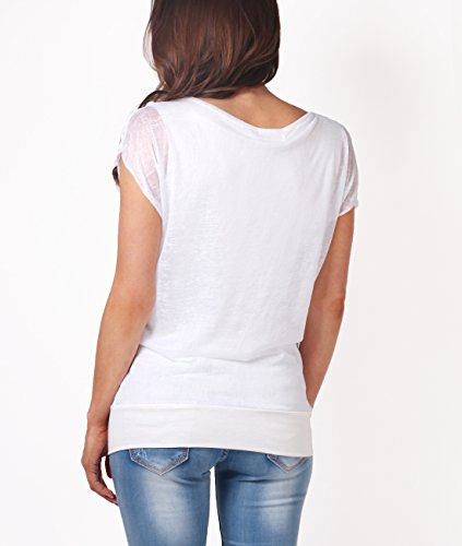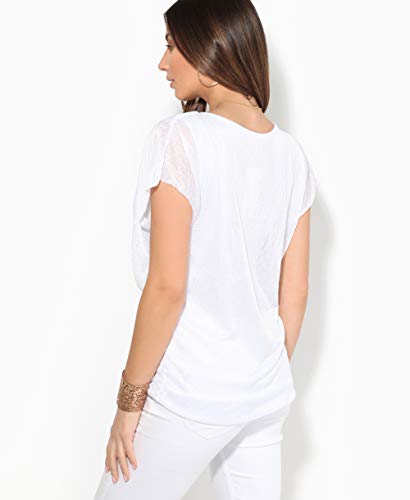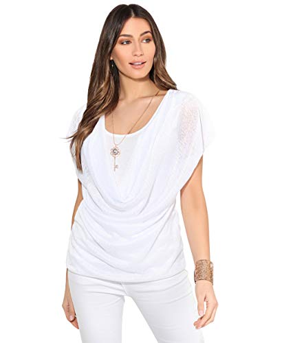KRISP Blusa Mujer Cuello Drapeado Verano, Blanco, 4749-WHT-XLXXL