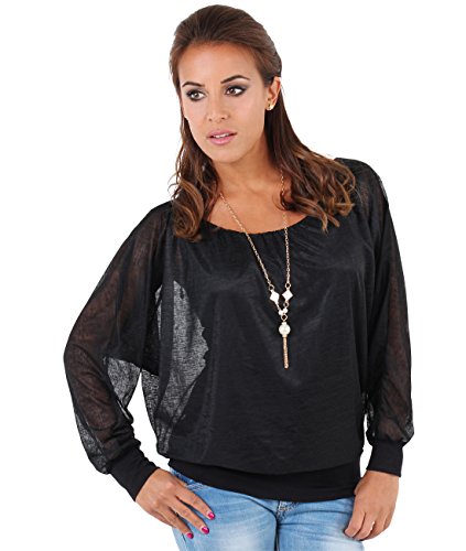 KRISP Blusa Mujer Moda Casual Juvenil Manga Larga Original Talla Grande Elegante, Negro (7214), S (36-38), 7214-BLK-S