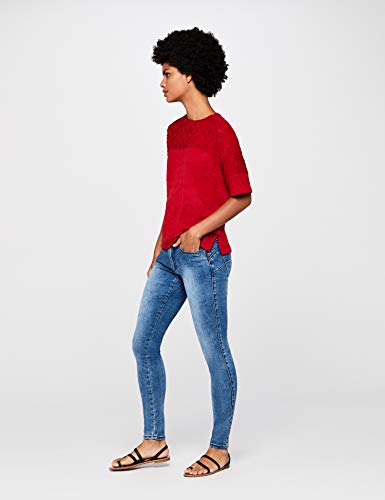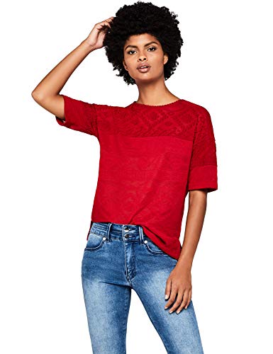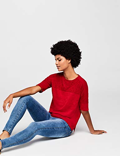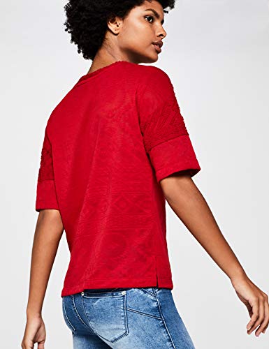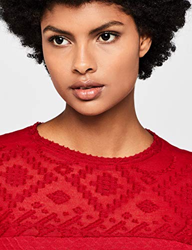 Marca Amazon - find. Camiseta de Manga Corta con Textura para Mujer, Rojo (Red), 40, Label: M