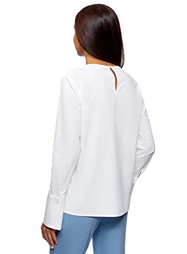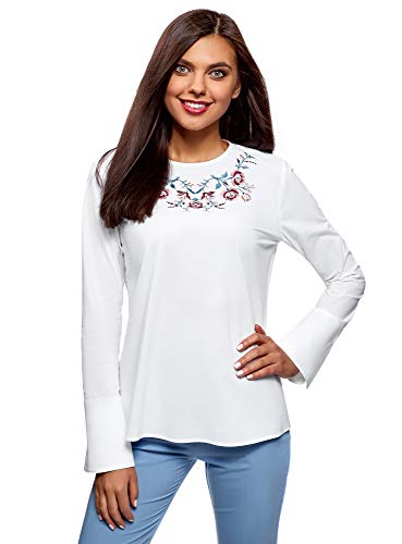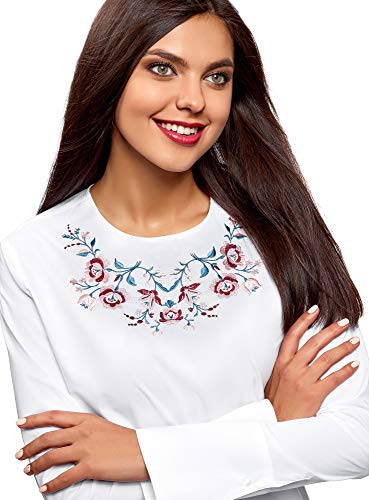 oodji Ultra Mujer Blusa de Algodón con Bordado, Blanco, ES 40 / M