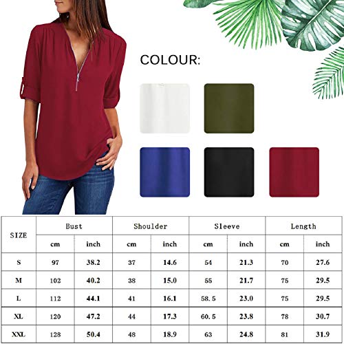 - ✿ Características: cuello en V / manga larga / cremallera / estilo jersey / patrón sólido / tela de gasa / camisa de color sólido / camisas de gasa / camisa de oficina / ajuste holgado ocasional / camiseta de blusa de talla grande. Camisa loadies elegante escuela trabajo pajarita cuello.