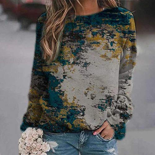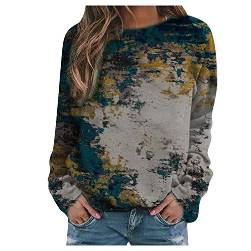 Camiseta Manga Larga Mujer Otoño Moda Sudadera sin Capucha Impresión Jersey Suéter Blusa Camisa Cuello Redondo Basica Suelto Tops Casual Fiesta T-Shirt Original tee Talla Grande vpass