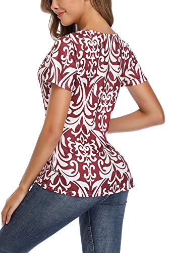 MISS MOLY Camisetas Mujer Manga Corta Blusa Verano Camisas Cuello v Elegantes impresión Blanco Large