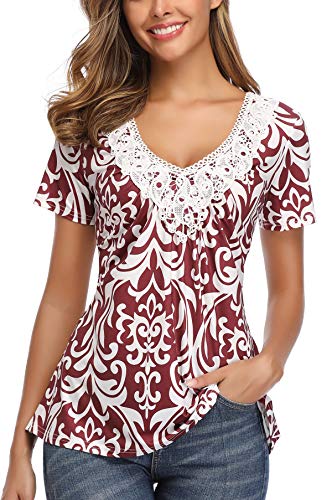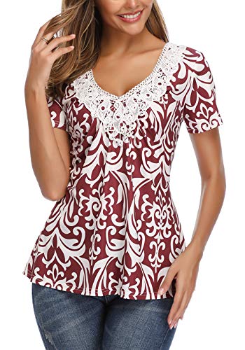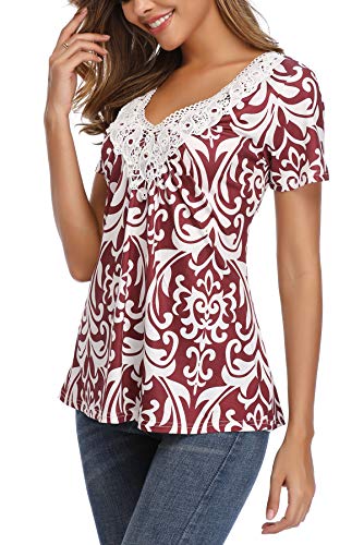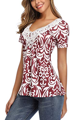 Camisetas Mujer SHOBDW Dia de la Mujer Verano Patchwork De Encaje Casual Ahuecar Volantes Manga Corta Suéter De Cuello De Tortuga Linda Blusa Floral Camiseta Blanca para Mujer (L, Azul)