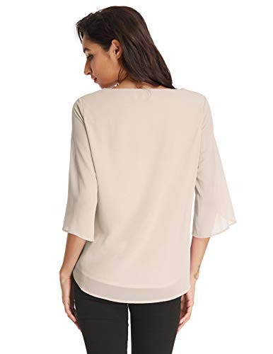 Camisa de Mujer Elegante Escote Redondo Blusa Camisa de Mujer de Gasa para Primavera Verano Beiga S CLAF15-2