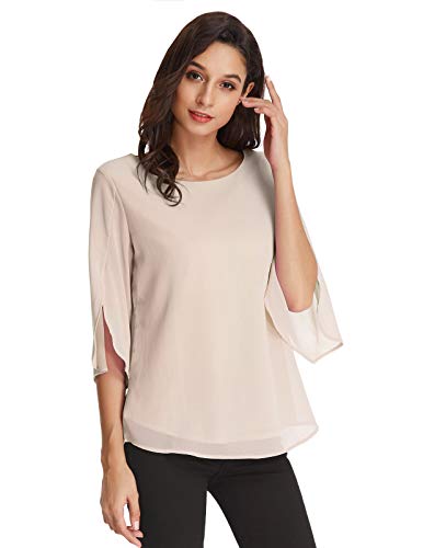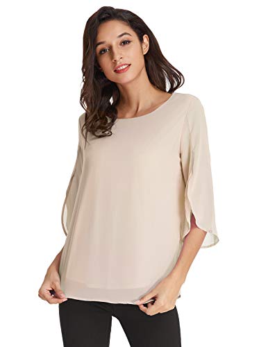 - Camisa de gasa para mujer, mangas 3/4, forro del cuerpo, no transparente. La blusa con cuello redondo está hecha de poliéster 100%, la tela es ligera y transpirable, suave y cómoda. Adecuado para primavera, verano y otoño.