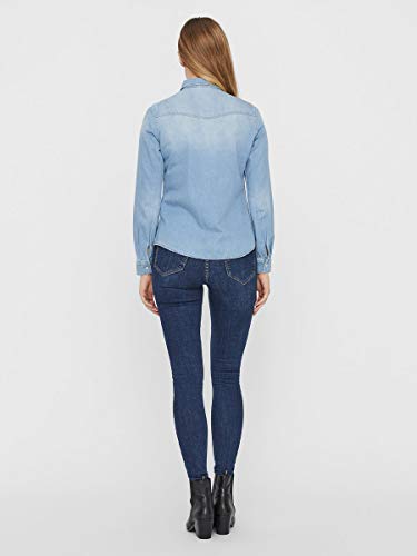 Vero Moda Vmmaria LS Dnm Slim Shirt Mix Ga Noos Ci Camisa, Hellblau, L para Mujer