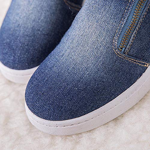 POLP Botines Invierno Mujer Caliente Botines de cuña Mujer Zapatos Vaquero Mujer 2019 Zapatos de algodón de Mezclilla Planos Botas de Nieve Cremallera Zapatos de Felpa