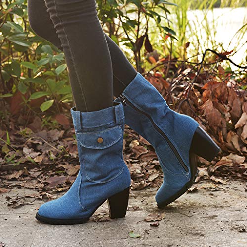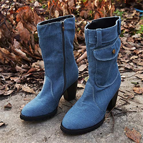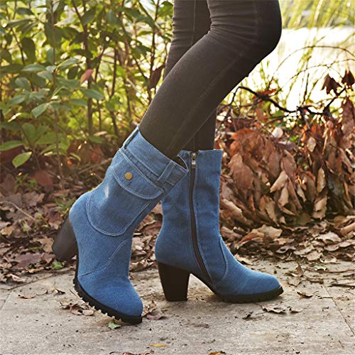 UMore Botas Mujer Botines de Vaquero Otoño Invierno Vintage Botines Mujer con Cordones Zapatos de Mujer Botas Cómodas de tacón Plano Cremallera Bota Corta Casual
