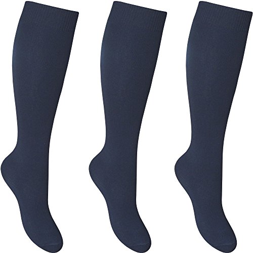 Calcetines escolares altos hasta la rodilla, de algodón, para chicas, paquete de 3 pares Azul azul marino