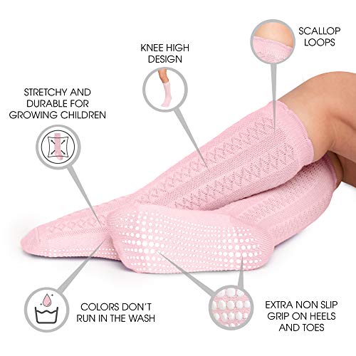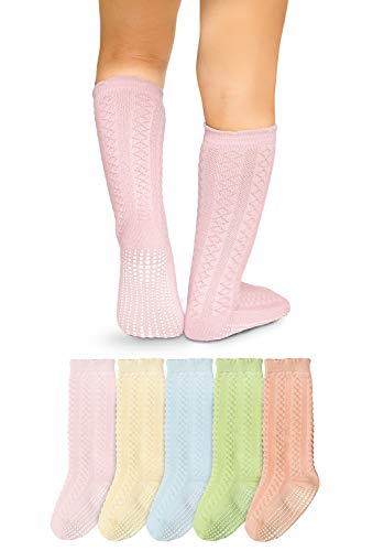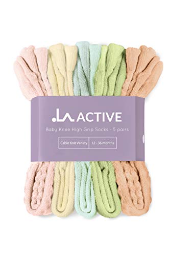 LA Active Calcetines Altos Rodilla Antideslizantes - 5 Pares - para Bebé Niños Niñas Infantil - Algodón de Hilo Tejida (Pasteles, 12-36 Meses)
