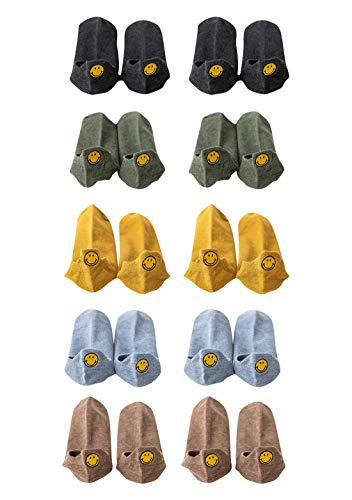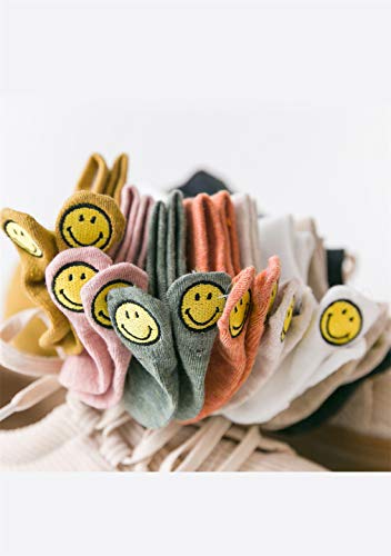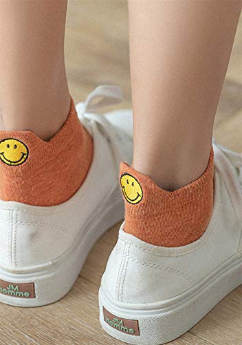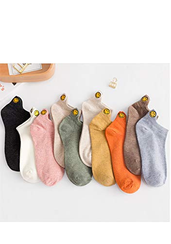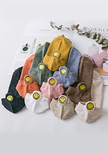 OMZIN Calcetines de mujer para el tiempo libre, cortos, divertidos y cálidos, de algodón, monocolor Smiley negro*2+azul*2+verde*2+marrón*2+amarillo*2 Talla única