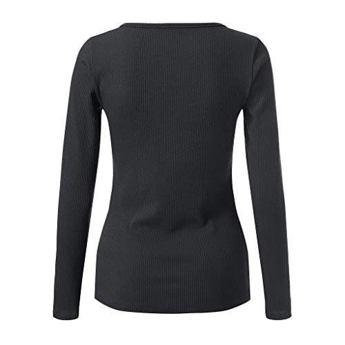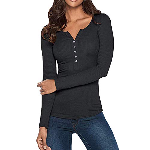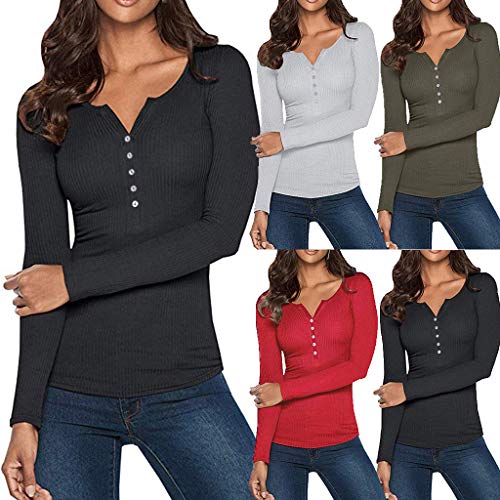 JiaMeng Moda Casual para Mujer Sexy con Cuello Camisas Henley con Cuello en V Manga Larga Botones sólidos Tops básicos Camisetas Camisa Jersey Blusa Tops