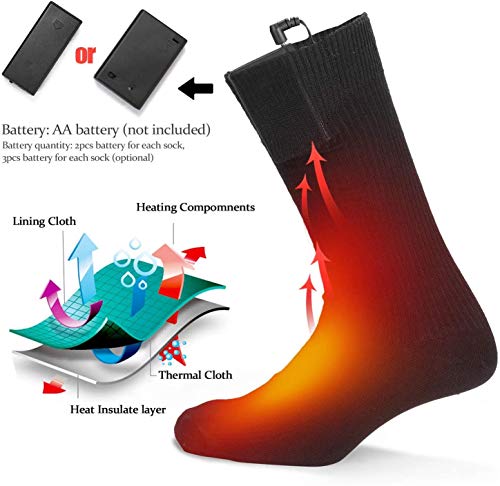 - 【CALCETINES CALENTADOS ELÉCTRICOS RECARGABLES】 Estos calcetines calientes electricos pueden ser alimentados por 2 pilas AA o baterías recargables de ion de litio (NO INCLUIDAS), la temperatura del calor será de hasta50 ℃