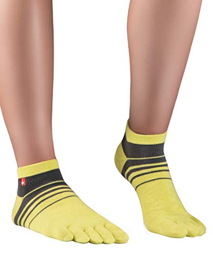 Knitido Track&Trail Spins Calcetines deportivos con dedos de hombre y mujer, para deporte, running y zapatos de cinco dedos, Talla:43-46, Colores:amarillo / antracita (901)