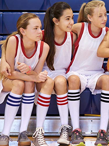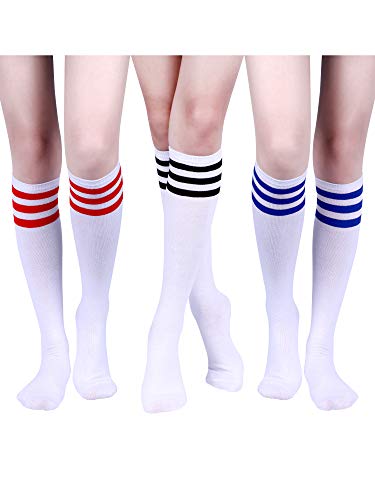 3 Pares de Calcetines a Rayas Triples Clásicos Calcetines Altos de Mulso Rodilla Calcetines de Tubo de Algodón Suave de Mujeres para Disfraz, 3 Colores (Conjunto de Colores 1)
