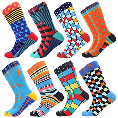 BONANGEL Coloridos Calcetines Para Hombres,Calcetines de Vestir Divertidos, Calcetines de Oficina de Algodón con Estampados Divertidos y Elegantes de Fantasía, Locos Geniales (39-46, 8 Pairs-Pizza5)