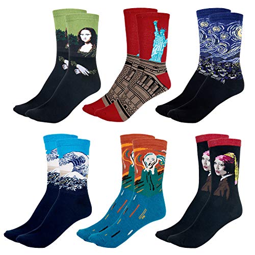 Czemo 6 pares Calcetines de Algodón Hombre y Mujer Arte Retro Pinturas Famosas Calcetines