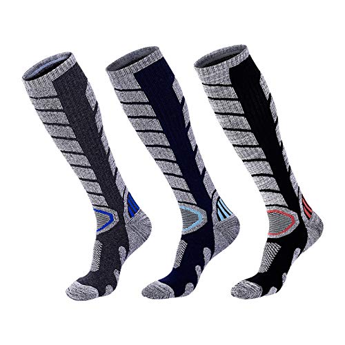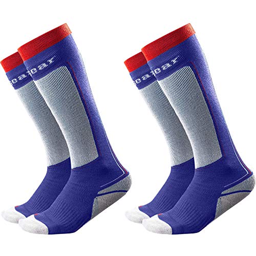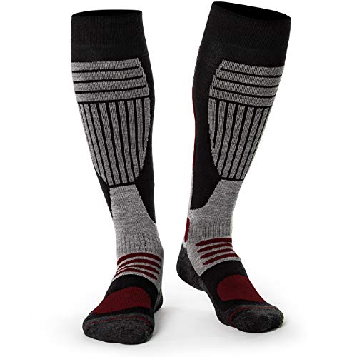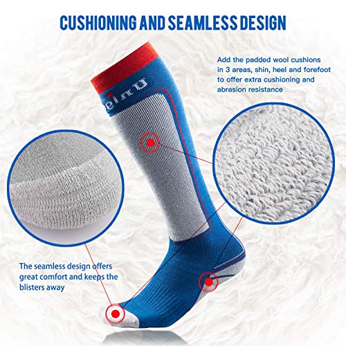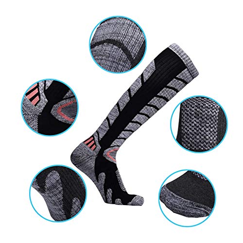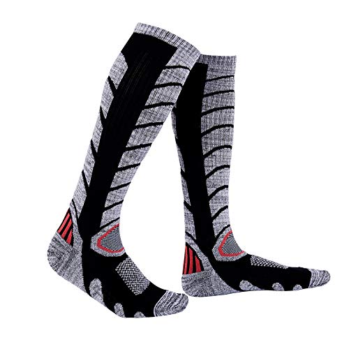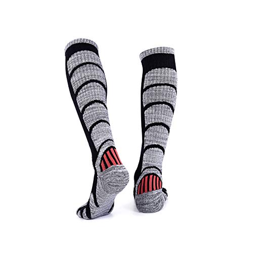 - Calcetines de esquí de alto rendimiento para hombres y mujeres: hechos de una mezcla de fibra de alta calidad de algodón, nailon y spandex, que tiene un aislamiento cálido de primera calidad, mantiene los pies cómodamente calientes.
