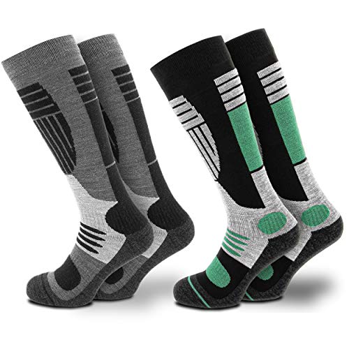 MOOKLIN ROAM 2 Pares Calcetines de Esquí Térmicos, Calcetines Largos Unisex Íntimo y Cómodo, Calcetines Snowboard Más Grueso y Largo, para Deportes de Invierno Montañismo Senderismo Ciclismo