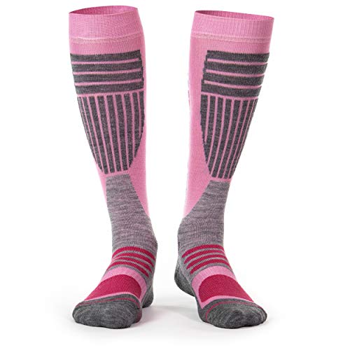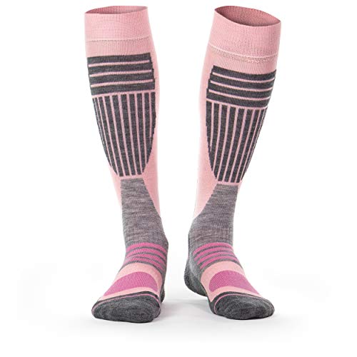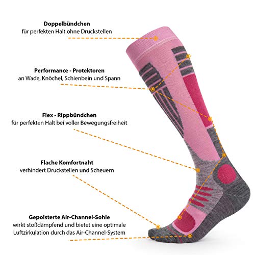 Occulto CALCETINES de ESQUI para MUJER (2 Pares), CALCETINES TÉRMICOS MUJERES DEPORTIVOS ACOLCHADOS y TRANSPIRANTES PARA TOURING, ALPINISIMO y SNOWBOARD 39-42 2 Pares Rosado