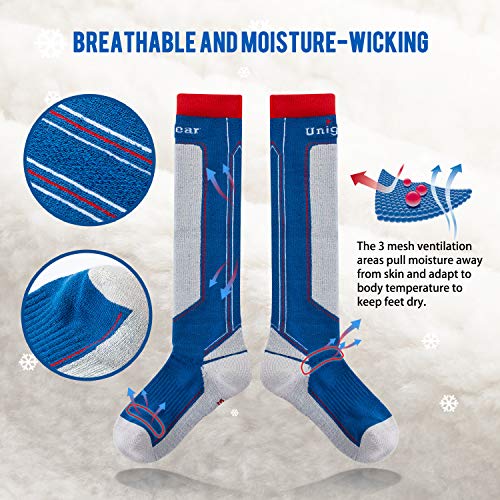 Unigear Calcetines Esquí Lana Calcetines de Invierno Largos Térmico Transpirable Antibacteriano y Sin Olor para el Esquí Montañismo Senderismo Ciclismo Uso Diario Adultos Unisex