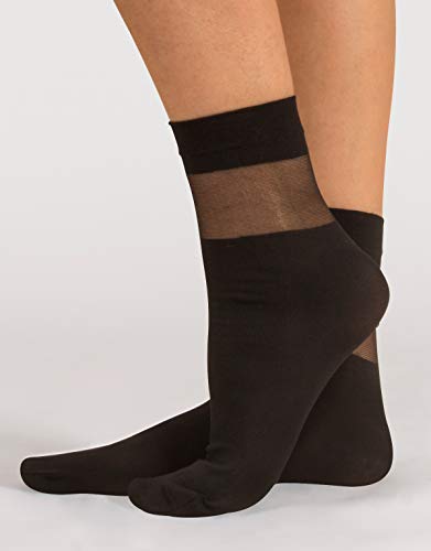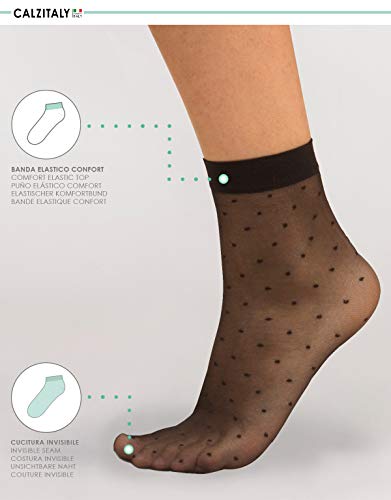 CALZITALY 3 PARES Calcetines de mujer | Mini medias semi transparentes | Fantasía Lunares, Rayas Verticales, Cuadros | Negro | Talla Unica | 100% Made in Italy | (NEGRO)