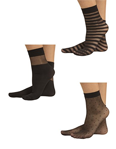- Pack de tres calcetines tobilleros de mujer: 1 Par de calcetines con rayas alrededor del pie + 1 Par de calcetines con lunares alredor del pie + 1 Par de calcetines con linea transparente en el tobillo. Elegantes calcetines finos de 20 DEN hechos con materiales suaves de alta calidad. Disfruta de cada paso con estos maravillosos calcetines de Calzitaly, perfectos para un look a la moda.