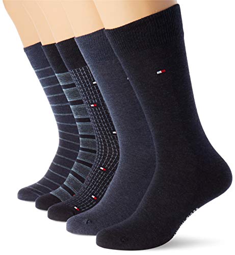 Tommy Hilfiger Th Men Sock 5p Fine Stripe Tin Giftbox calcetines, pantalones vaqueros, 39/42 (Pack de 5) para Hombre