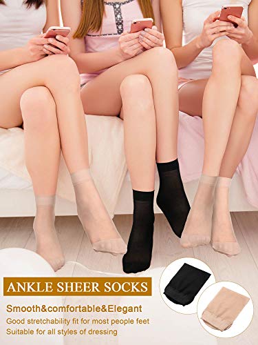 - 2 Colores: obtendrá 20 pares de calcetines transparentes hasta el tobillo en 2 colores, incluidos negro y desnudo, 10 pares por color, estos calcetines se adaptan a la mayoría de las ocasiones, son fáciles de combinar con su vestido, falda, pantalones cortos, etc., pueden ir bien con su trajes