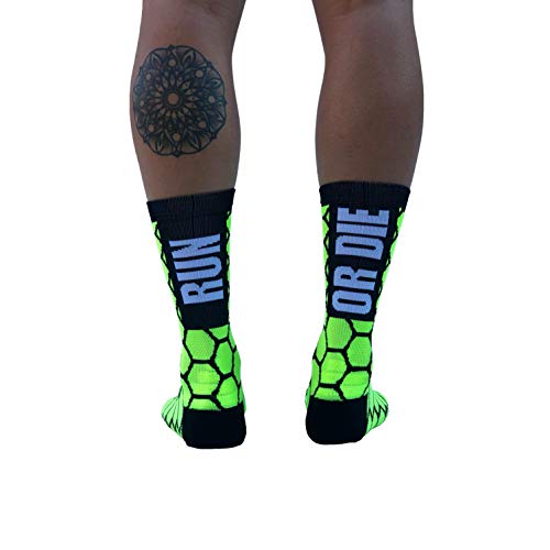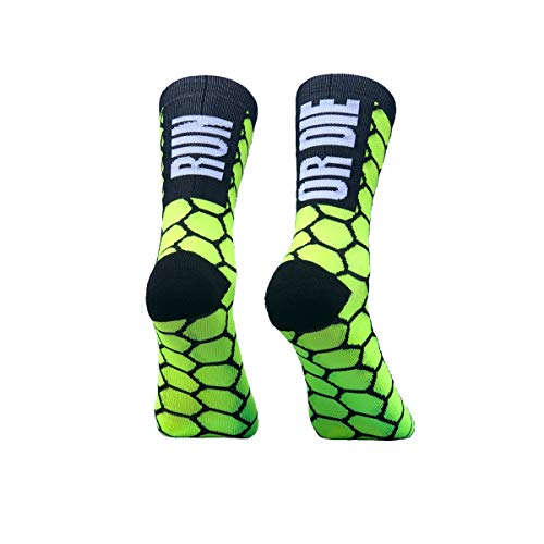 PERRO LOCO CLOTHES Calcetines de Running compresivos con Refuerzo en Puntera, prepuntera y talón. Edición Limitada. (Run OR Die Amarillo, 37-39)