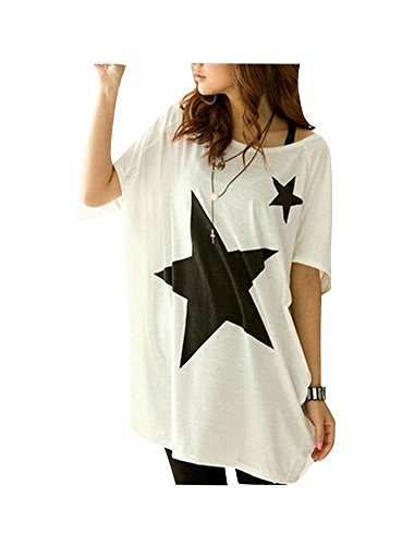 Lanodove Blusa Verano Mujer 2017 Camisa Manga Murcielago Camiseta Estampada Estrella Cuello Redondo T-Shirt Manga Corta (Talla única, Blanco)