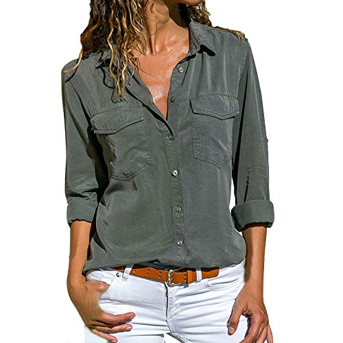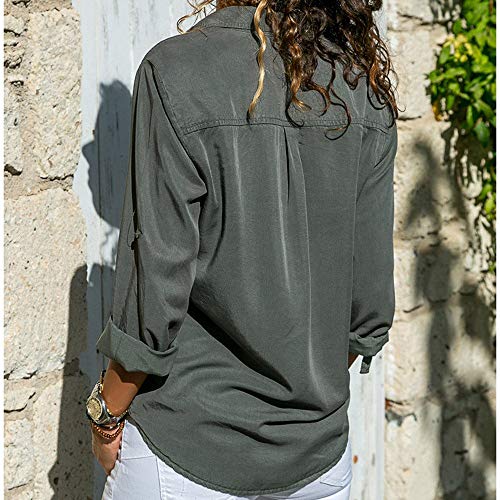 Camisa Mujer Blanca Manga Larga Talla Grande Negra Sexy Cuadros Corta Vestir Botones Gasa Verano Vaquera Verde Azule Blusas para Mujer Elegantes Fiesta Baratas Camisetas POLP (XL, Ejercito Verde)