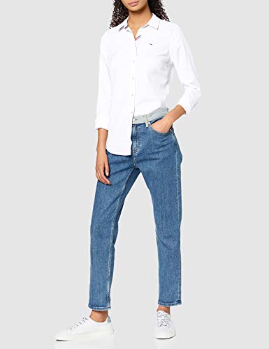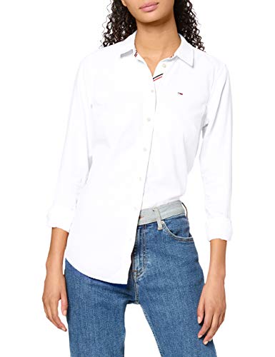 Tommy Jeans Tjw Slim Fit Oxford Shirt Camisa, Blanco (White), 40 (Talla del Fabricante: Large) para Mujer