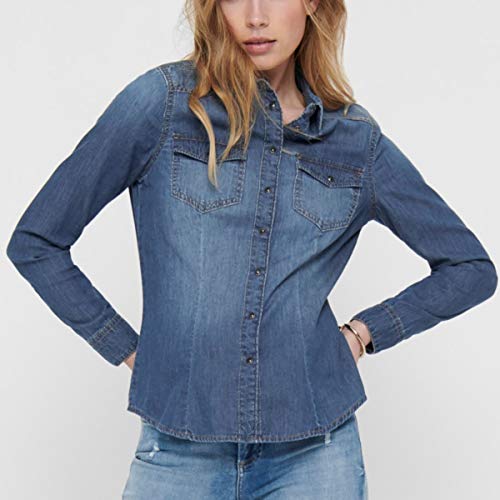 Only ONLROCKIT Life Denim LS Shirt BB NAS844 Blusas, Medio De Mezclilla Azul, 38 para Mujer