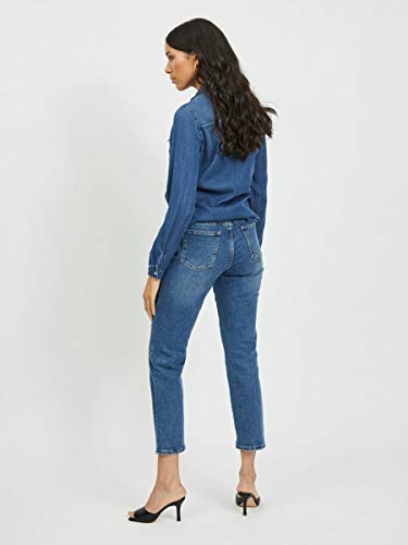 Vila Clothes Vibista Shirt-Noos Blusa, Azul (Dark Blue Denim Wash: Clean), 38 (Talla del Fabricante: Medium) para Mujer