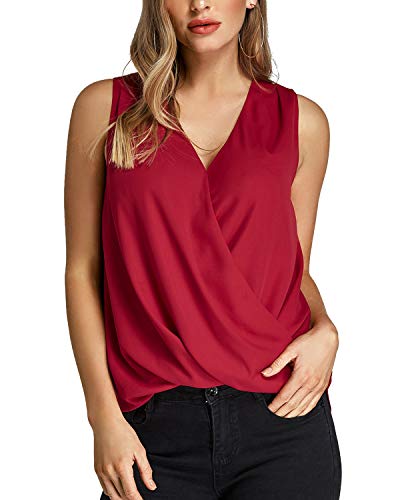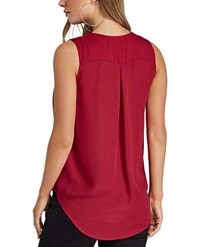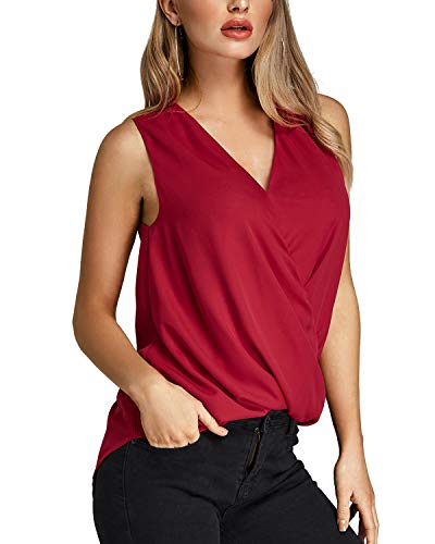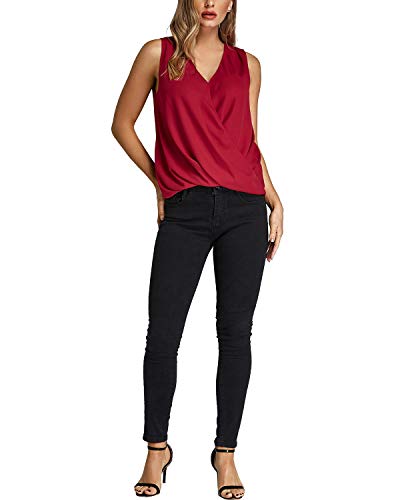 YOINS Camiseta Sin Mangas Mujer Camisola Gasa Camiseta con Cuello En V Camisa Trabajo Informal Playa Blusa Tops Verano Vino Rojo L