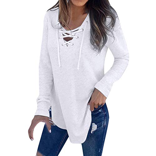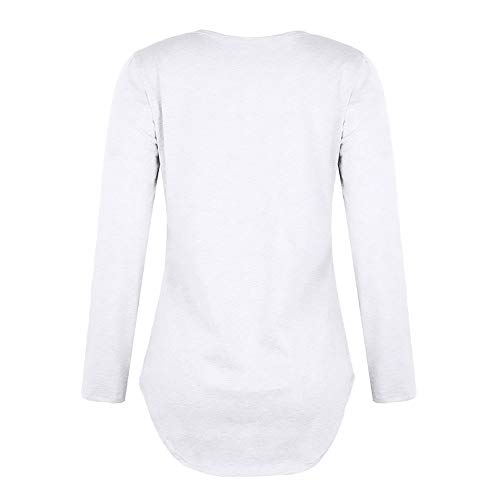 Camiseta de Mujer,Manga Larga Elegante Color sólido Blusa y Camisa Cuello en v Basica Camiseta Moda Suelto Verano Primavera Tops Casual Fiesta T-Shirt Original vpass