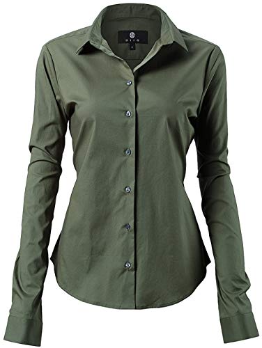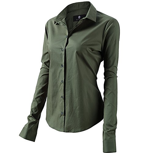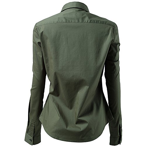 INFLATION Camisa de Vestir Elástica Mujer, diseño clásico Trabajo/Reunion/Ceremonia/Boda/Fiesta/Ocasiones Formales/Casuales, Verde Militar, Cuello 39CM, Pecho 104CM
