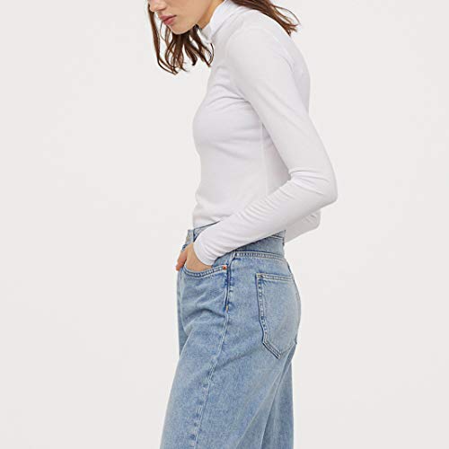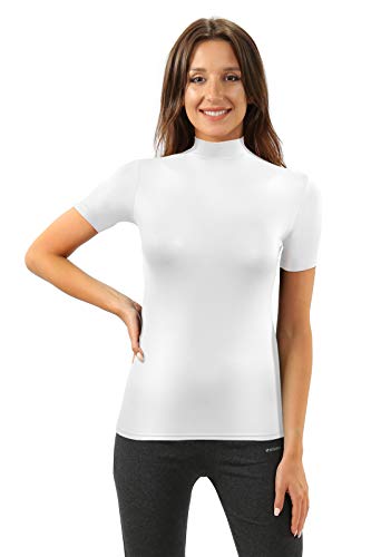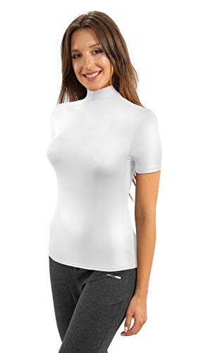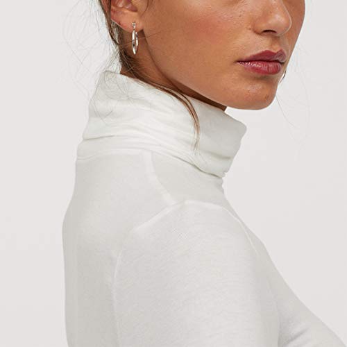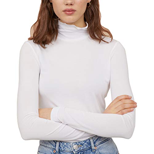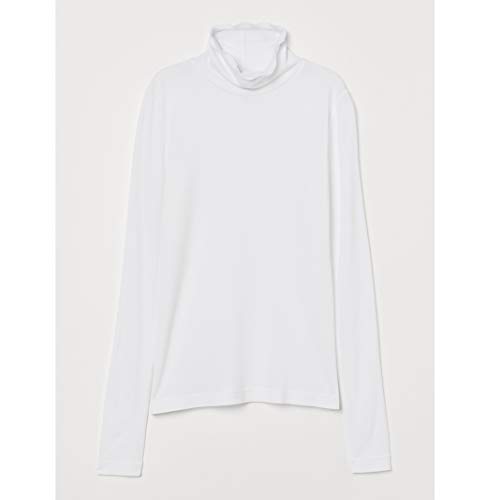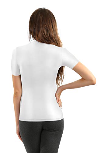 Cuello Alto Camisetas de Manga Larga Mujer Algodón Negro Marca Moda Caual Slim Camisas Ropa (Blanco, XL)
