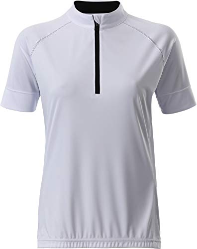 James & Nicholson Ladies' Bike-T Half Zip Camiseta, Blanco (White/Black), L para Mujer