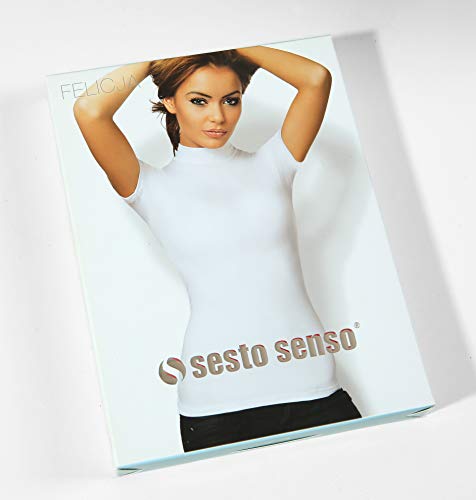 Sesto Senso Mujer Camiseta Manga Corta Cuello Alto Color Sólido Viscosa M Blanco