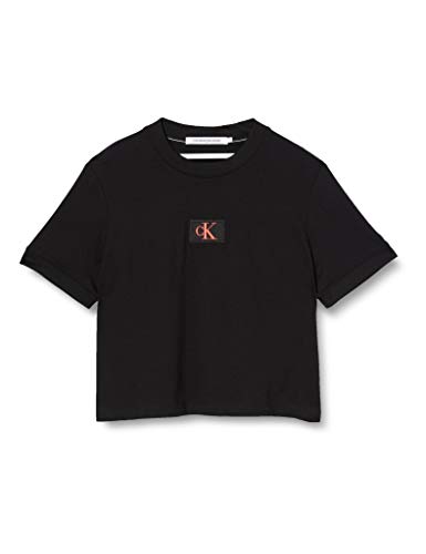 Calvin Klein CK Badge Cropped tee Camisa, Negro, XS para Mujer