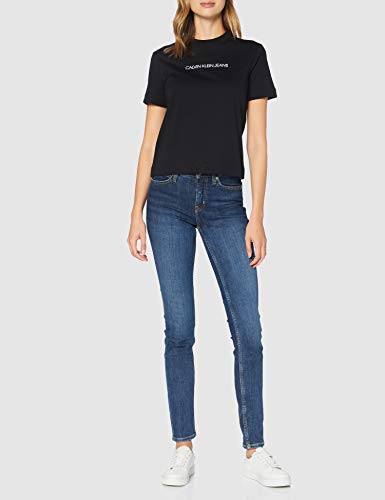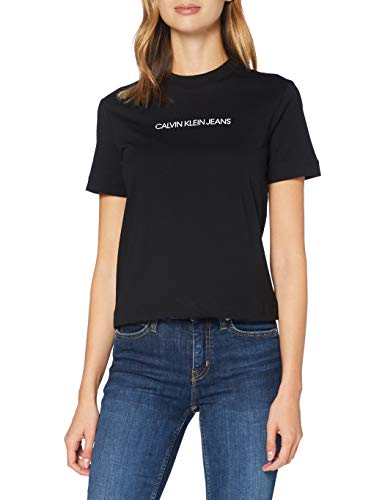 Calvin Klein Shrunken Institutional Gmd tee Camisa, Black, XS para Mujer